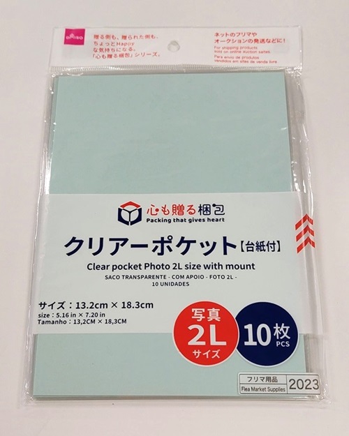 <ダイソー>クリアーポケット(台紙付、写真2Lサイズ、10枚)